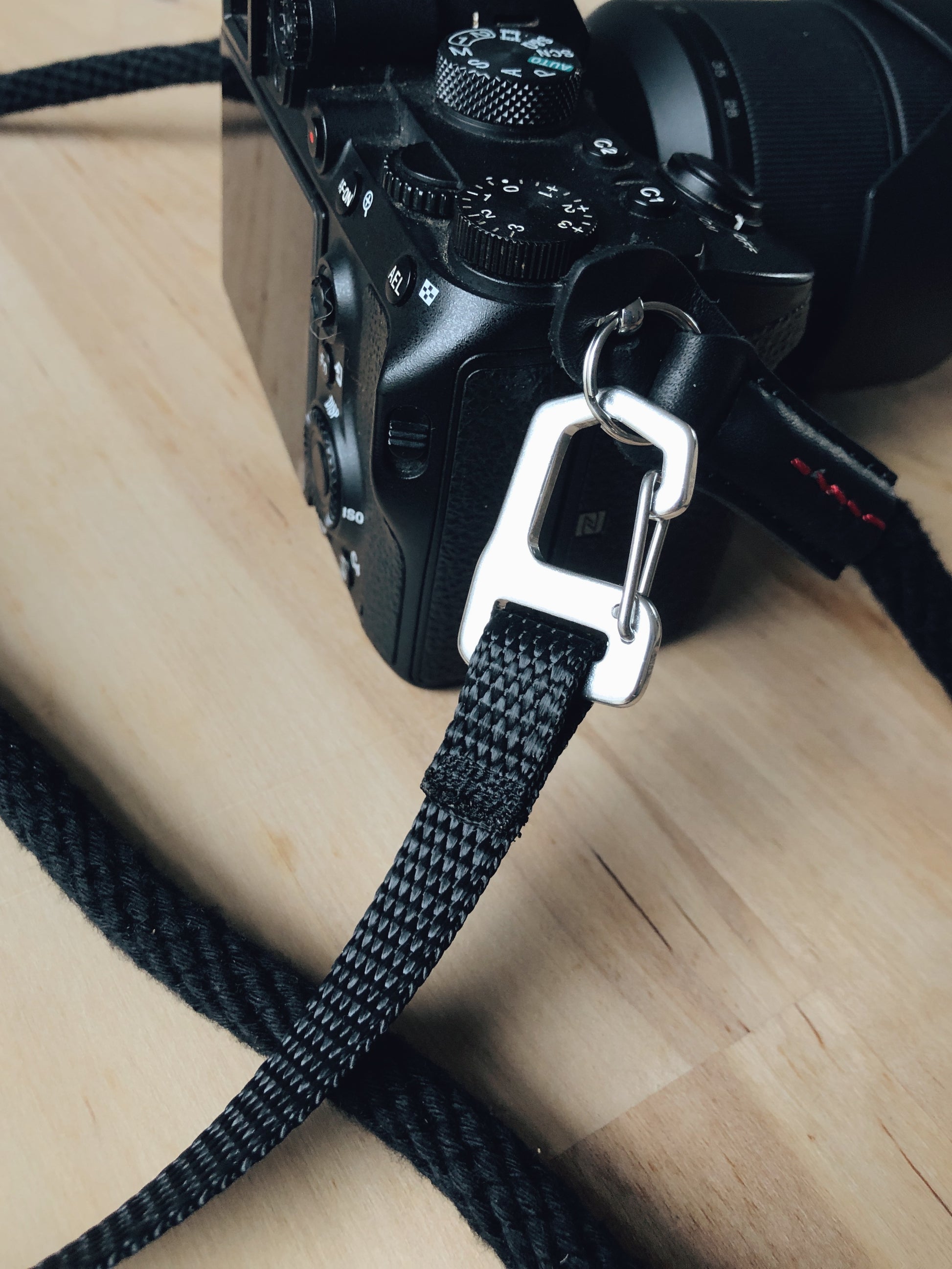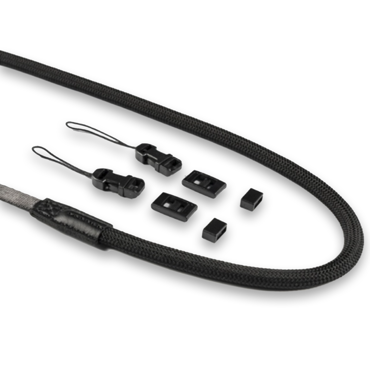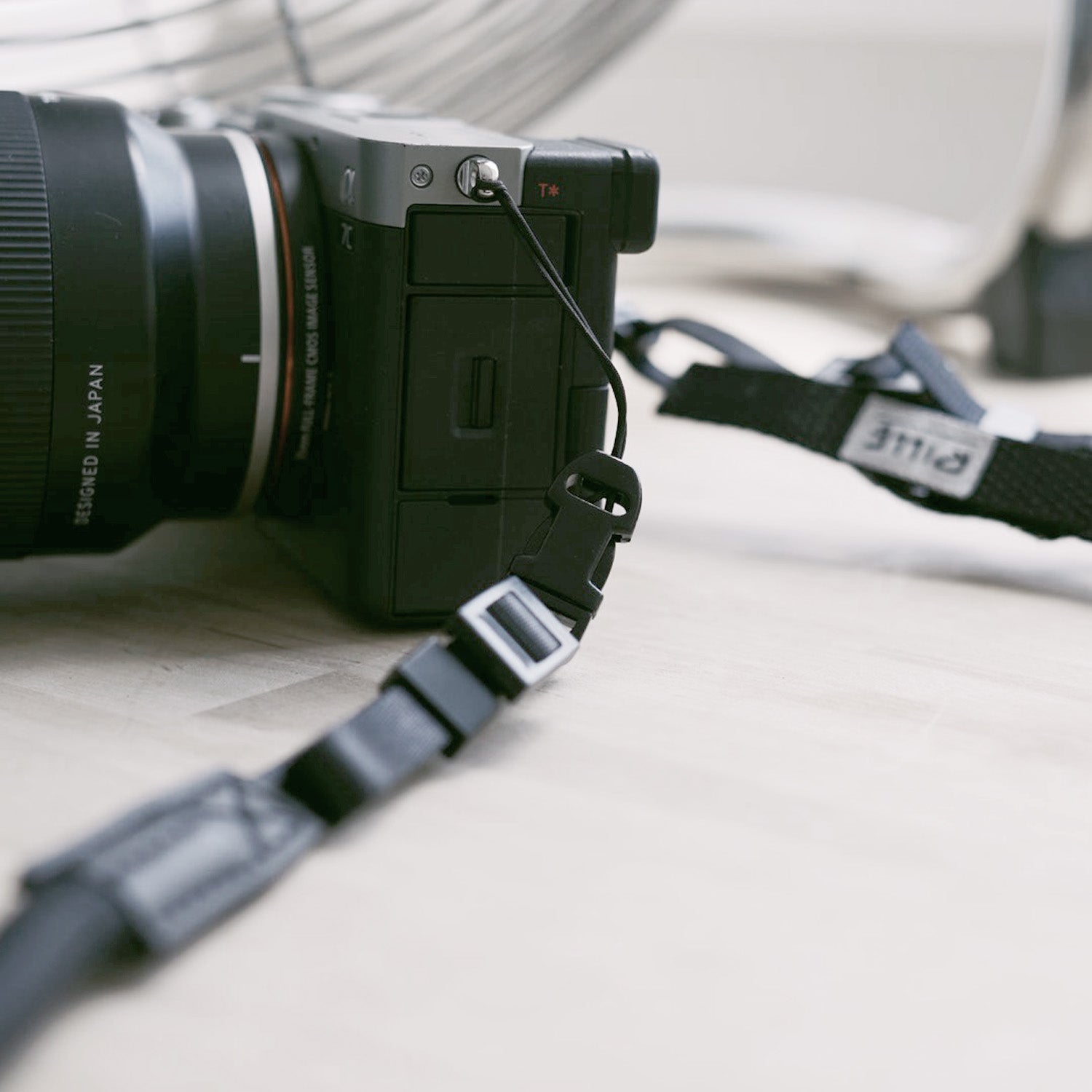 The Rille stabiliser strap is the best solution we could find to keep our cameras secure on our backs when out on rides. We paired it with a 9mm thick mountaineering shoulder strap which is adjustable in length from 80-135cm and connects to the camera using easy-to-detach ABS buckles.